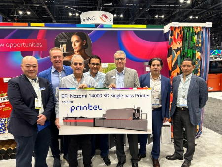 Um dos momentos de maior destaque foi a oficialização de novos negócios firmados durante a feira. Entre eles, a aquisição da EFI Nozomi 14000 SD pela mexicana Printel S.A. de C.V., a primeira instalação do modelo no país, marcando um passo importante na expansão da companhia para o segmento de embalagens e papelão ondulado. Também foi anunciado o investimento da Digital Performance Gear em uma EFI VUTEk M3h, reforçando o crescimento da base de impressoras híbridas de alta produtividade.